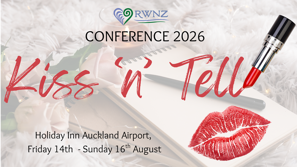 The 2026 RWNZ Conference invites you to Kiss ’n’ Tell at the Holiday Inn Auckland Airport, 14–16 August. Three days of craft, community, and candid conversations about writing romance; the triumphs, the challenges, and everything in between. Come for the knowledge, stay for the connections!
